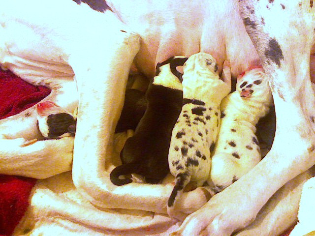 AKC CH Lakaya's Lady Lillian!! You can see pictures of them on our past pups page. We kept a mantle female out of this breeding, Roxy who we have high hope for. They produced such nice pups we decided to repeat this breeding for one final litter in 2008. Chelsey is now spayed and retired and lives like a Queen with a good friend of mine. =)